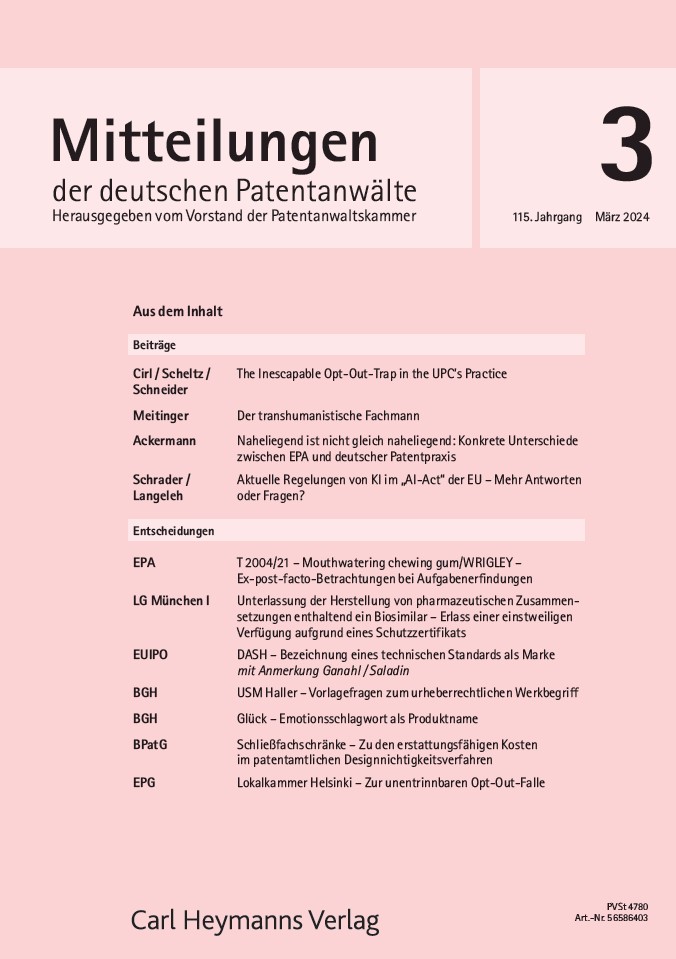 Dr. Meitinger beschreibt in der März-Ausgabe des Jahres 2024 vor einem Szenario des Transhumanismus die Änderung des patentrechtlichen Fachmanns.